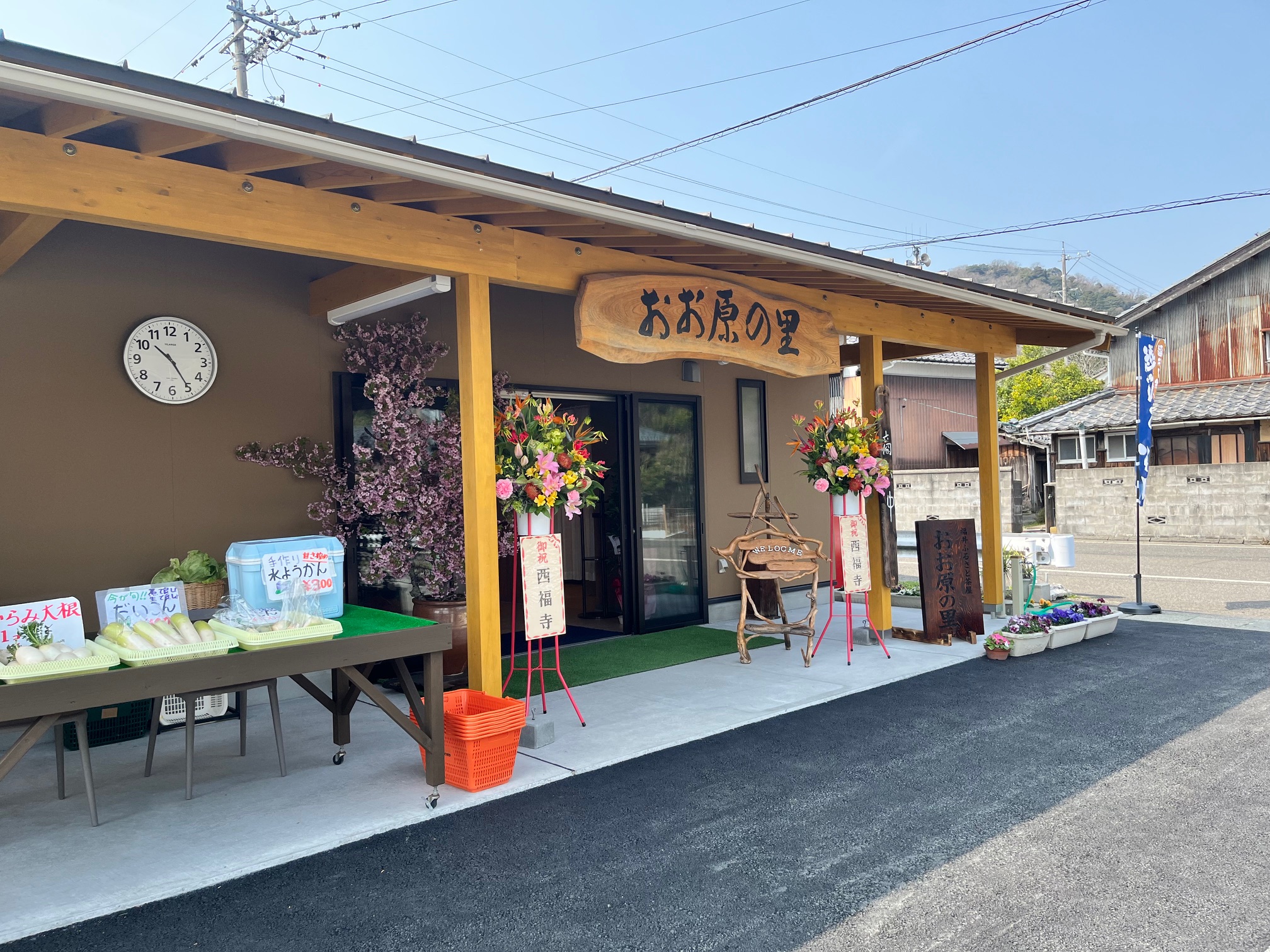地元の採れたて農産物や、手作りの品物を販売しています。 また、越前手打ちそば、ぜんざいなどの軽食をお楽しみ頂ける、憩いのお食事処でもあります。 2026年2月 建物の改修工事を行いました。 新名物 越前手打ちそば 広い軒下での対面販売をお楽しみ下さい。 販 売 ■農産物 ・原地区の 採れたて野菜 ■お惣菜 ・旬の野菜を使ったお惣菜など ■西福寺 ゆかりの品 ・西福寺 門前味噌 お食事処 軽食・飲み物 ・越前手打ちそば ・ぜんざい ・コーヒー